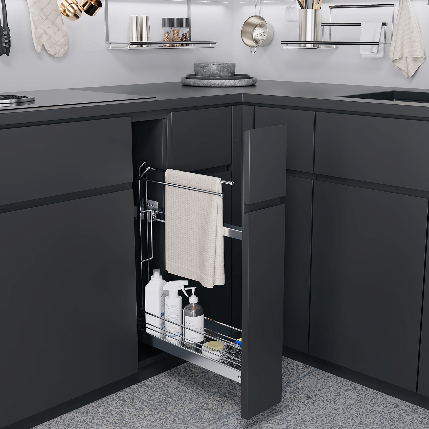 Бутылочница №15 для полотенец H 592 фасад 150 мм 3D