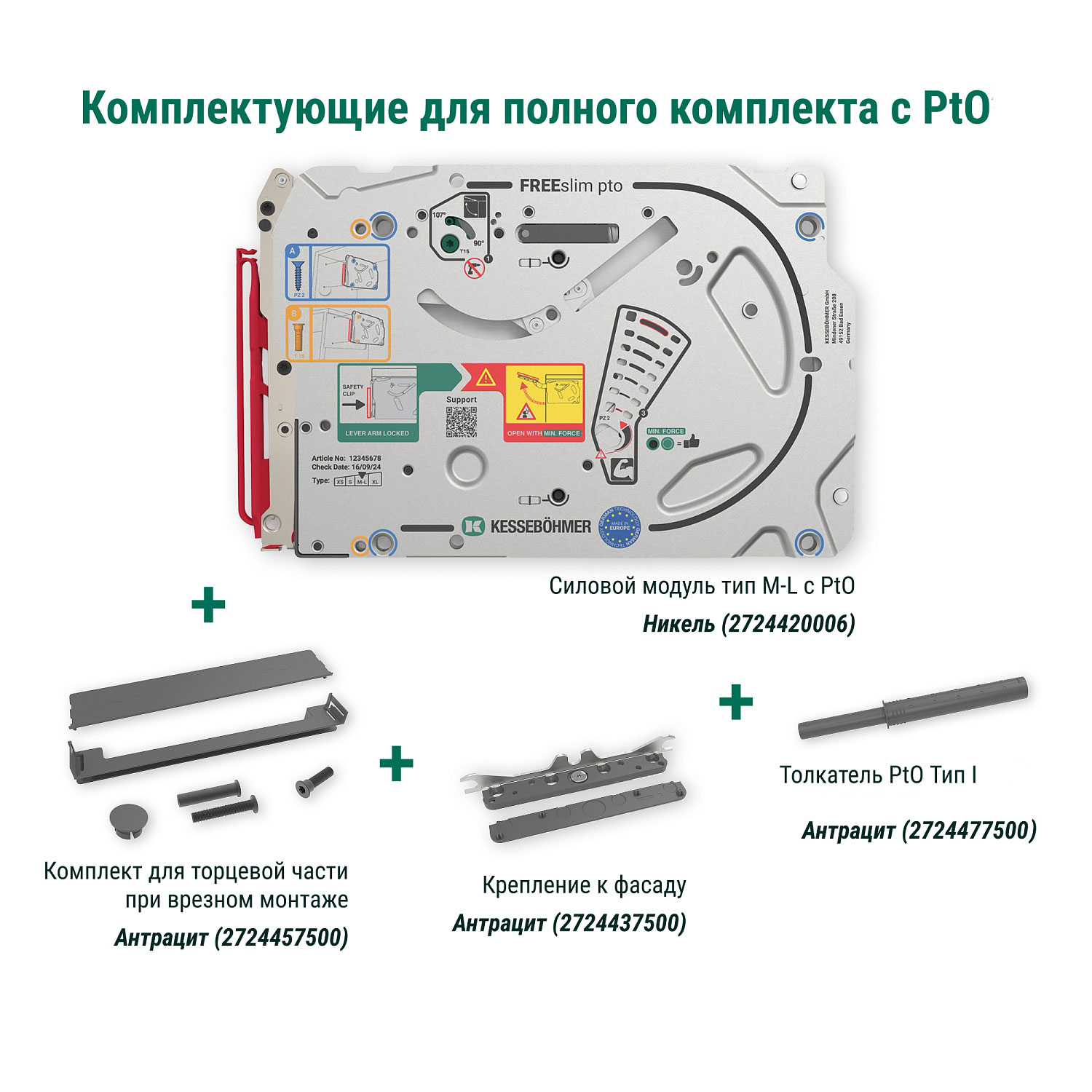 Силовой модуль тип M-L Pto левый и правый, к подъемнику ФриСлим Флап, H 225-650, 2 шт + 4 установочных штифта, 8 шурупов 4х20 мм, цвет НИКЕЛЬ (2724420006)