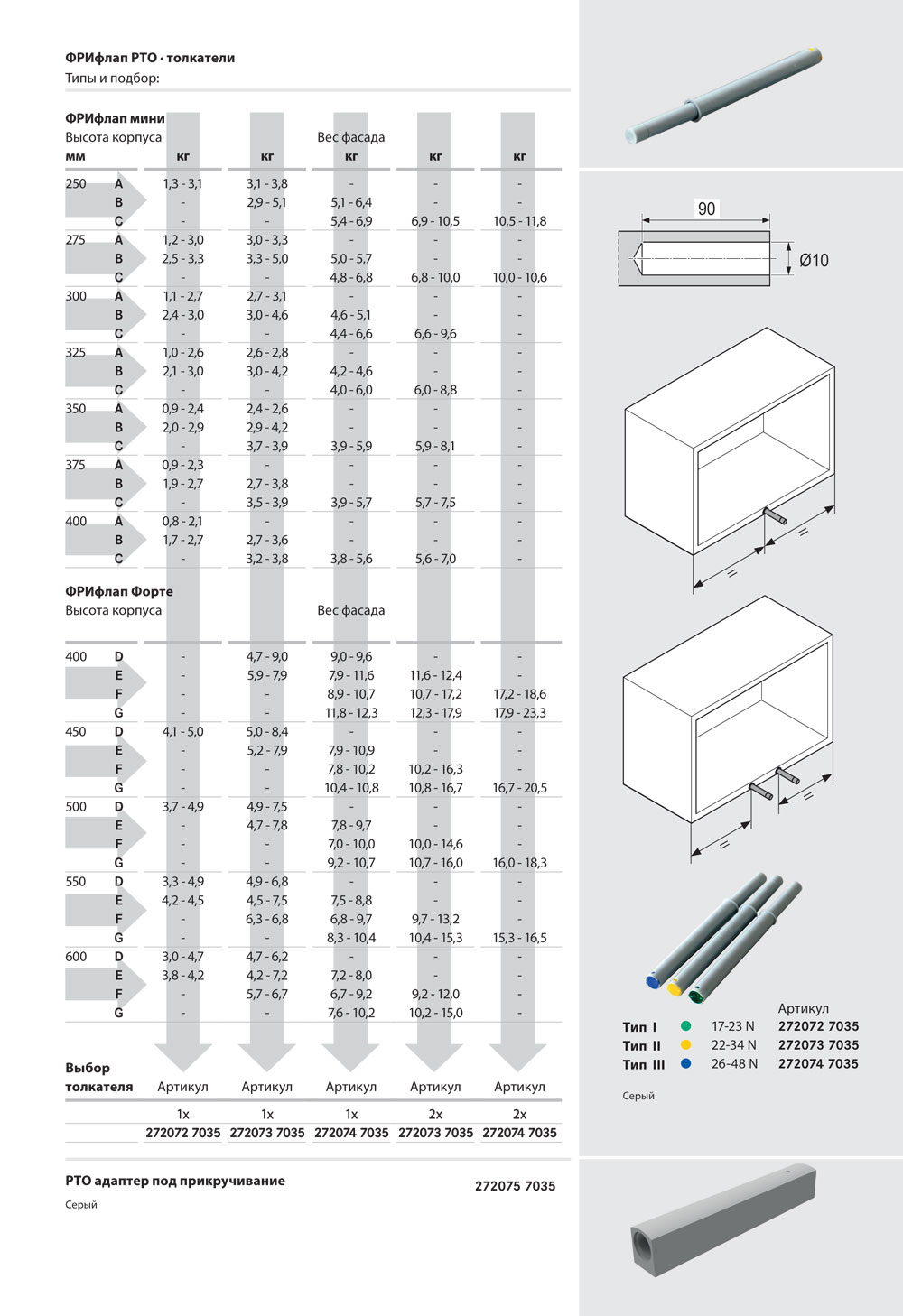 Толкатель PtO врезной ТИП III (C) 26 - 48N Серый Kessebohmer | официальный магазин