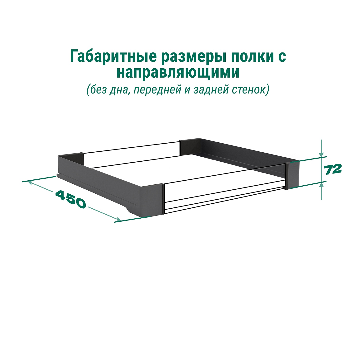 Conero Полка внутренняя выдвижная 450 мм Конер, H 72 без дна, передней и задней стенок, 1 шт