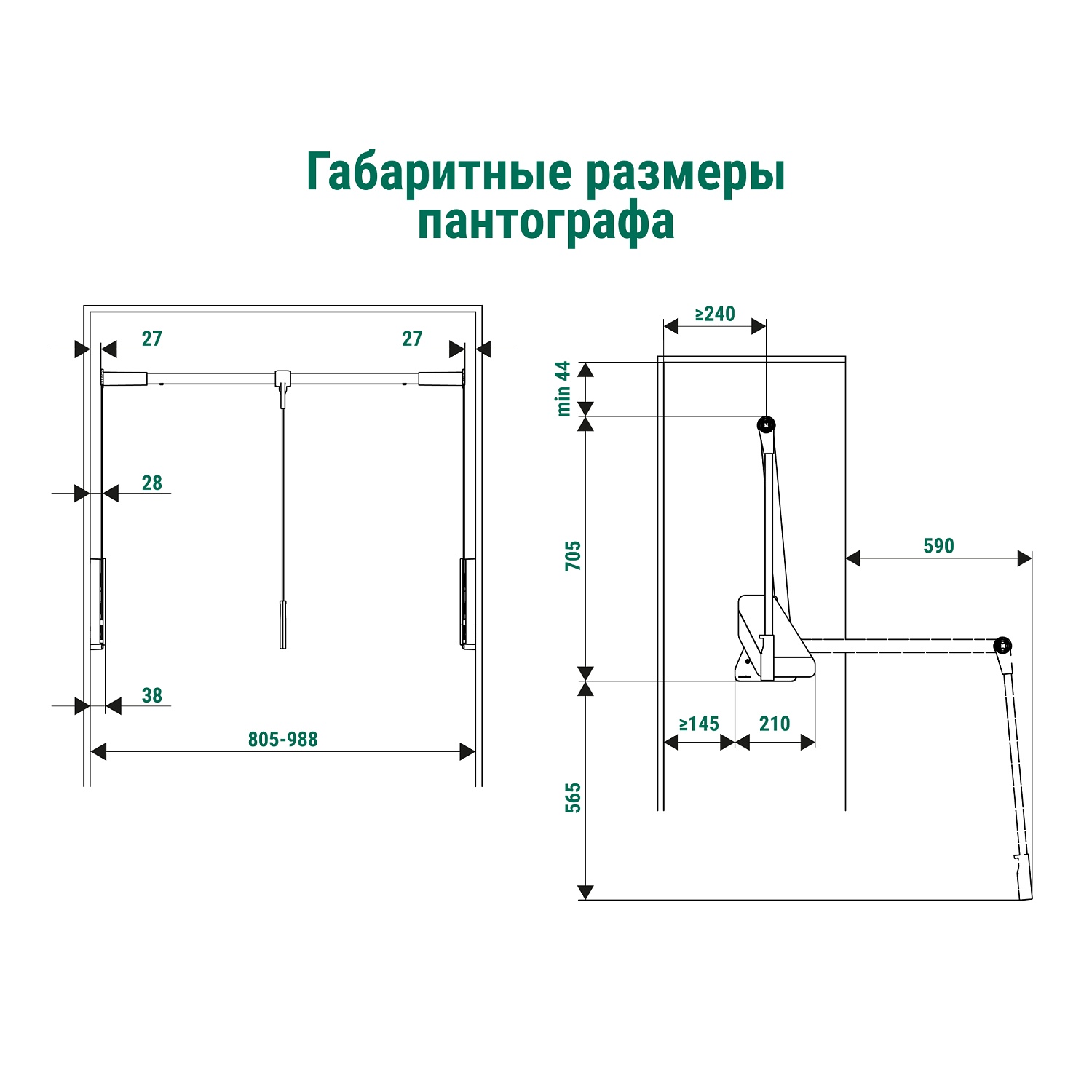 Conero Пантограф для гардеробной стандартный, Конеро W 805-988 мм, нагрузка 0,5-12 кг